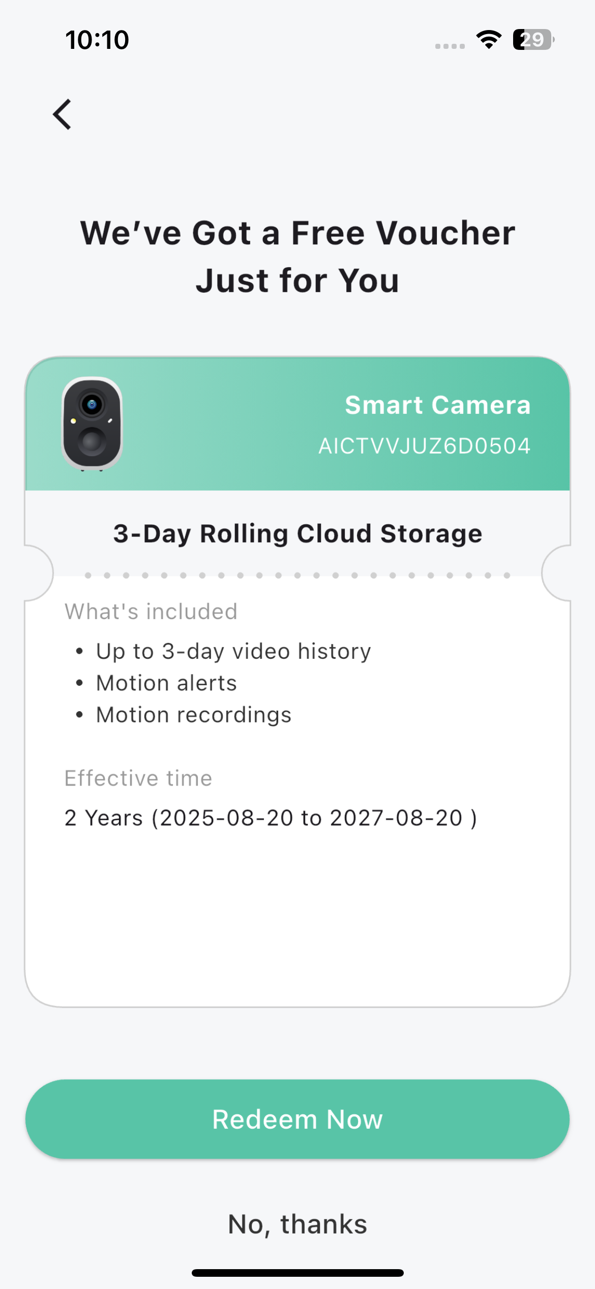 在App账号没有套餐生效的情况下,部分设备可以手动领取免费套餐。有两个领取路径: